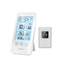 Meteorologická stanice, ikona předpovědi počasí (slunečno, mírně oblačno, oblačno, déšť, sníh), vnitřní měření teploty a vlhkosti, venkovní měření teploty a vlhkosti