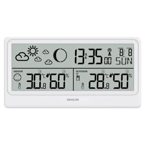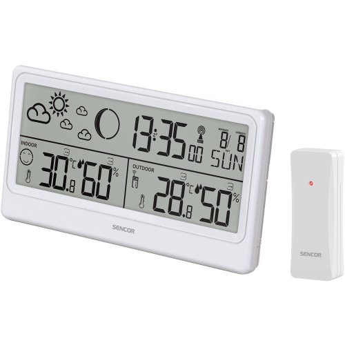 Pokročilá meteostanice SENCOR SWS 3600 se hodí do každé domácnosti. Před odchodem do práce nebo do školy vám a vašim dětem poradí „co na sebe“. Zkontrolujete ukazatel venkovní teploty, podíváte se na obrázkovou předpověď počasí a budete mít jasno. Meteostanice je velmi přesná. Dokáže měřit venkovní teplotu v rozsahu od -40 °C až do +70 °C (případně ve °F), vnitřní teplotu, a dokonce vlhkost od 0 % do 99 % (venku i uvnitř). Maxima dokáže ukládat do paměti. Hravě se s ní naučí zacházet i nemladší člen rodiny.