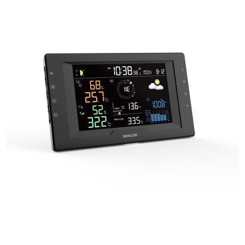 Dokonalý přehled o počasí Využijte moderní technologie pro přesné informace o počasí. S pomocí špičkového zařízení jakým je meteorologická stanice Sencor SWS 9400 získáte vždy spolehlivá data. Barevný TRUE BLACK LCD displej o velikosti 5,7" (14,5 cm) vám zobrazuje vše podstatné, včetně předpovědi na 12 či 24 hodin, podle vašeho výběru. Nastavení intenzity jasu zajišťuje pohodlné čtení informací. Přístroj monitoruje aktuální teplotu, vnitřní i venkovní vlhkost, a pomocí grafu zobrazuje také historii srážek. Díky možnosti nastavení výstrah máte vždy přehled o nebezpečných jevech jako silný vítr nebo náledí. Multifunkční bezdrátový senzor Nejdůležitější částí této stanice je inteligentní snímač 5v1, který poskytuje komplexnímeteorologické údaje. Měří rychlost a směr větru, zaznamenává srážky, teplotu i vlhkost. Bezdrátová komunikace s hlavní jednotkou funguje až do vzdálenosti 150 metrů. Můžete ho tak snadno umístit kamkoliv. Špičková přesnost měření Zařízení využívá švýcarská čidla SENSIRION, která se osvědčila v profesionální meteorologii. Měří teplotu s minimální odchylkou, a to jen v desetinách stupně, zatímco vlhkost je zaznamenána s přesností 2–3 %. Díky těmto senzorům získáte přesné a spolehlivé informace o aktuálních podmínkách. Automatická synchronizace času Meteorologická stanice kromě předpovědi počasí poskytuje také vždy přesný čas. Díky radiovému signálu DCF77 jsou hodiny a datum automaticky synchronizovány, což zajišťuje přesné měření i při změnách na letní čas. Nemusíte se tak starat o manuální úpravy.