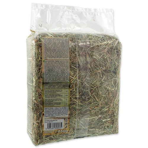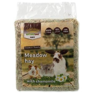 Seno je obohaceno o sušené květy heřmánku, který je dlouhá léta využíván jako léčivá bylina. Heřmánek obsahuje antioxidanty, které chrání zvířata před nepříznivými vlivy prostředí a má spoustu dalších blahodárných účinků na zdraví vašeho mazlíčka.