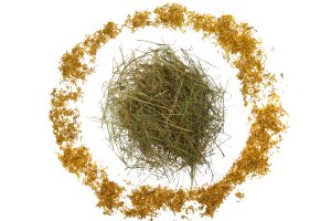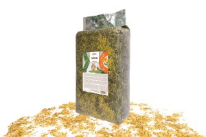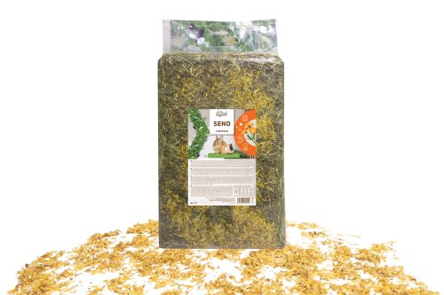 Doplňkové krmivo pro králíky, hlodavce a další druhy býložravých zvířat. Vysoce kvalitní seno z českých luk určené ke krmným účelům, obohacené o lístky měsíčku, které dodávají senu jemnou vůni a zpestřují jeho chuť.