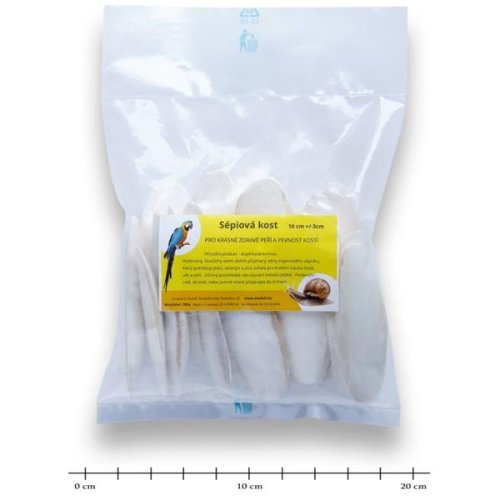 Sépiová kost je přírodní pochoutka bohatá na vysoký obsah organického vápníku. Podává se hlavně exotickým ptákům, plazům a měkkýšům, u kterých nedostatek vápníku může způsobit zdravotní problémy. Sépiové kosti jsou mechanicky očištěny od všech organických zbytků a stop zabarvení. Ostré lámavé a „prázdné“ okraje bez využitelného vápníku jsou obroušeny. Kosti mají díky obroušení povrchové vrstvy jasně bílou barvu. Každá z kostí obsahuje minimálně 30 % využitelného vápníku a 0,03 % fosforu. Rozměry: 10 cm Balení: 20 ks