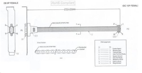 Záslepka slotu s jedním sériovým portem, připojovací kabel s konektorem 10 pin. délka 25 cm, kabel AWG28 Serial Slot Bracket connection cable,D-Sub9-2x5pin 0,25m, CU, AWG28, unshielded, M/F, UL •D-Sub9pin …