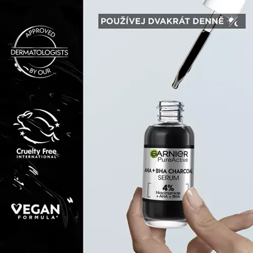 Sérum se 4 % obsahem aktivních látek [NIACINAMID + AHA + BHA] redukuje pupínky a výskyt skvrn a nedokonalostí. Obnovuje povrch pleti a zanechává ji hladší a sjednocenější.