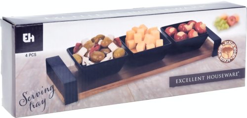 Sada servírovacích misek na akátovém podnose EXCELLENT – elegance a praktičnost v jednom