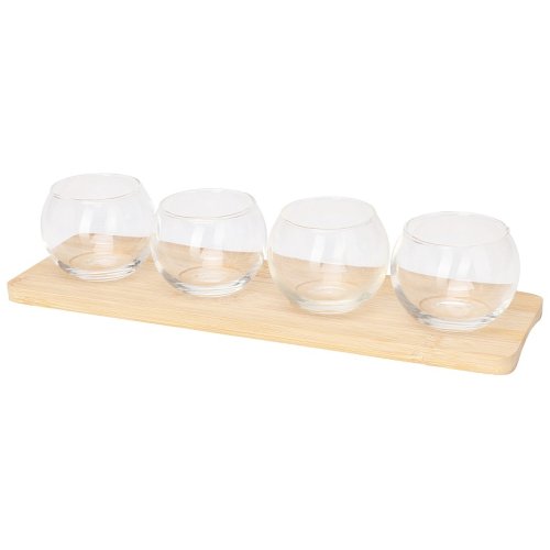 Servírovací sada 5 ks EXCELLENT – skleněné misky na bambusovém tácku
