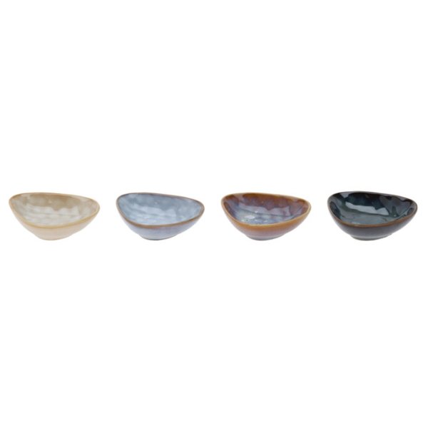 Moderní a barevná sada kameninových misek, ideální pro servírování snacků, pochutin nebo dipů. Každá miska je jedinečná díky reaktivní glazuře v trendy barvách.