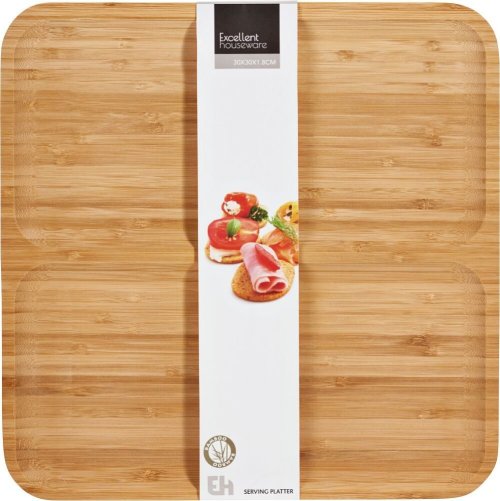 Stylový a ekologický servírovací talíř vyrobený z bambusu (Phyllostachys edulis). Ideální pro podávání různých druhů pokrmů, předkrmů nebo snacků. Díky svým čtyřem přihrádkám umožňuje oddělené servírování jídel.