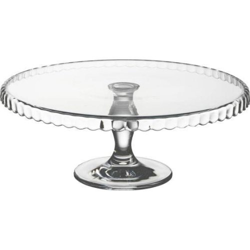 Podnos na nožce s ozdobným okrajem – skvělý pro servírování bábovky, muffinů, dortů, zákusků… Materiál: sklo .