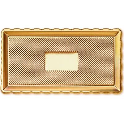 Plastový podnos zlaté barvy s protiskluzovým dnem.