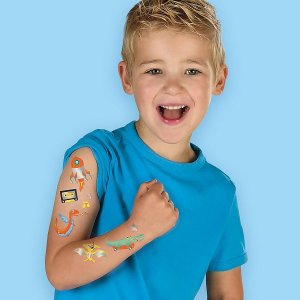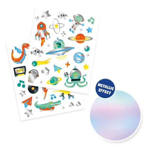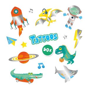 Úžasná tetování s metalickým efektem rozzáří dětem den. Ať už se tetováním ozdobí na večírek, maškarní bál nebo jen tak pro zábavu – zaručeně zazáří! Tetování jsou bezpečná pro pokožku, snadno se nanášejí na pokožku a stejně snadno se také smývají. Sada obsahuje 50 metalických tetování s různými veselými motivy. Kosmeticky testováno. Rozměry balení: 20 x 15 x 0,5 cm. Věk: 3+