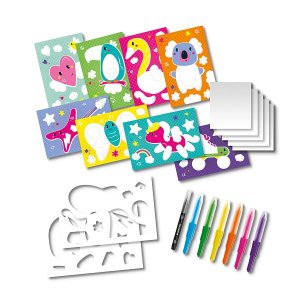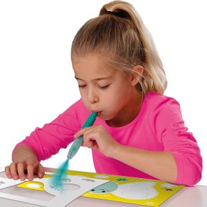 Vytvářejte úžasná graffiti díla s barevnými efekty. S barevnými foukacími fixy, šablonami a černým fixem vytvoříte ty nejúžasnější umělecká díla. Ideální pro děti, které mají rády odvážné a kreativní projekty. Obsah balení: 6 barevných foukacích fixů, 1 černý štětcový fix, 8 barevných kartiček s předlohou, 5 prázdných listů papíru, 2 šablony. Barvy foukacích fixů: modrá, zelená, žlutá, oranžová, růžová a fialová. Snadno se smývají z kůže a většiny druhů textilií. Baleno v krabičce. Rozměry balení: 20 x 30 x 4 cm. Věk: 5+
