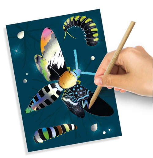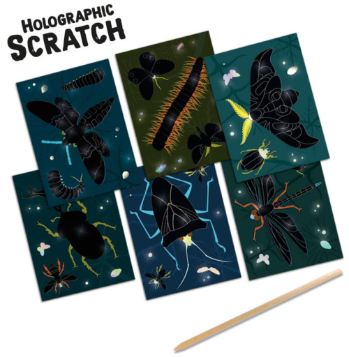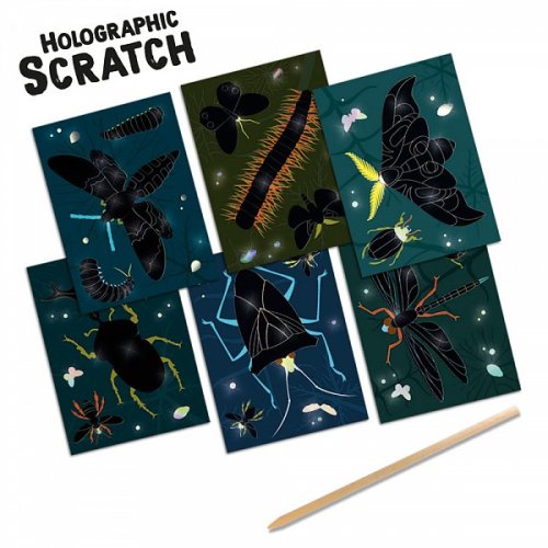 Zábava s barevným koncem! Škrabací obrázky Ses jsou výborným dárkem nejen pro kreativní děti. Papír je potažený černou vrstvou skrývající podklad s holografickým efektem, který z kresby udělá nevšední podívanou. Postup: Vzory jsou skryté. Jednoduše vyškrábejte předkreslené části škrabacím perem a vytvořte obrázek. Fantazii se meze nekladou, proto je možné vyškrábat i černá místa bez potisku a dodat obrázku osobitý rámeček. Obsah balení: 6 holografických vyškrabávacích karet, 1 dřevěné vyškrabávací pero. Vhodné pro děti od 3 let.