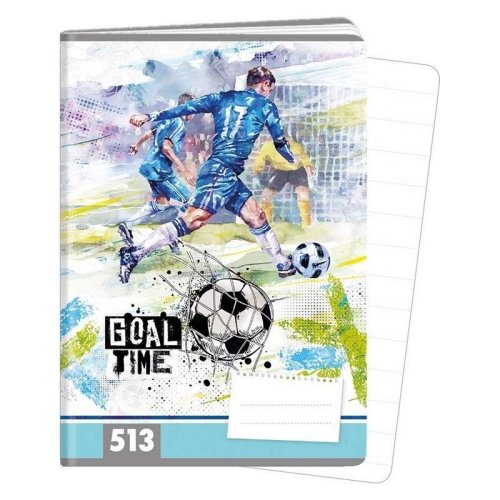 Sešit 513 GOAL TIME, velikost A5, 10 listů, nezbytná součást školních potřeb, vhodný pro žáky 1. a 2. ročníku, široké řádky 12 mm.