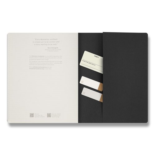 Gramáž papíru 70 g/m², neobsahuje kyseliny. Papír má slonovinovou barvu a je vyroben z FSC certifikovaného dřeva., Rozměr: 21,59 x 27,94 cm, 60 listů, linkovaný., Velikosti notesů:, * XS - 6,5 x 10,5 cm (A7), * S - 9 x 14 cm (A6), * L - 13 x 21 cm (A5), * XL - 19 x 25 cm (B5), * XXL - 21,59 x 27,94 cm (A4)