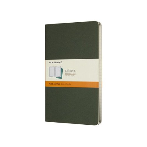 Sešity Moleskine Cahier, L, linkované, 3 ks - tm. zelené
