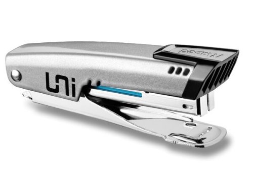 Malá kovová sešívačka se zabudovaným rozešívačem.
