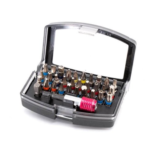 sada bitů + magnetický nástavec v plastovém držáku - 32 ks jsou vyrobeny z vysoce kvalitní oceli, která zajišťuje jejich odolnost a dlouhou životnost sada je dodávána v přehledném pouzdře, která umožňuje …