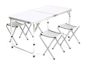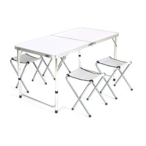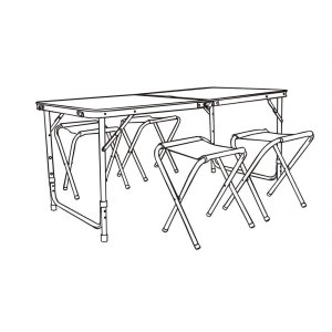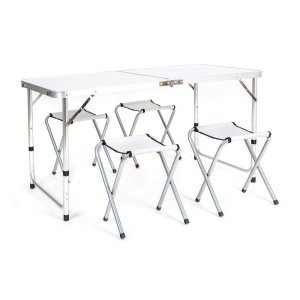 Kampingová sada BILBAO obsahuje stůl s konstrukcí z hliníku a 4 ocelové stoličky. Sada je vhodná pro kemping, cestování, outdoor, ale i na zahradu. Její nespornou výhodu je složení do kufříku o rozměrech 62 x 7,5 x 63 cm pro snadné přenášení.