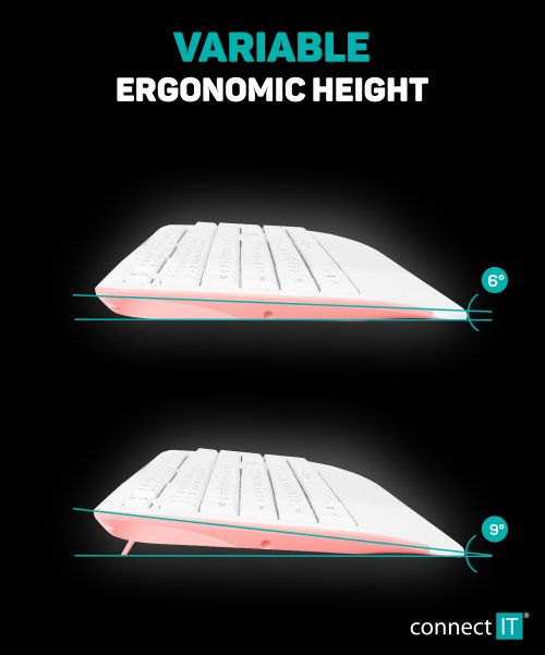 - Nízký profil klávesnice a její výšková nastavitelnost pro pohodlí vašich zápěstí