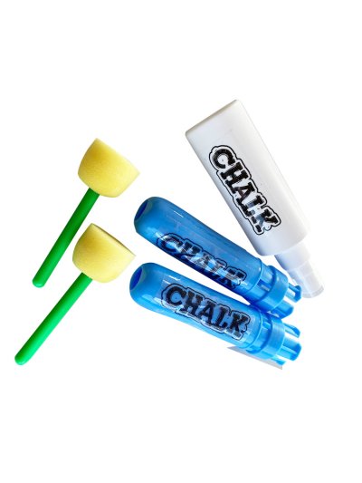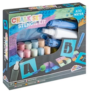 Sada pro kreativní malování křídami. Sada obsahuje 10 kříd, 2 držáky na křídy, šablony písmen, 2 houbičky na tvoření rozmazaného efektu a nádobu s rozprašovačem na vodu. Namaluj obrázek na chodník, postříkej ho vodou a pomocí houbičky barvu rozetři. Vytvoříš tím různé odstíny barvy.