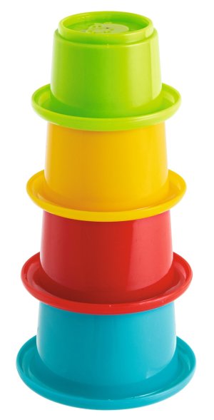 Sada pro nejmenší obsahuje vkládací box, pyramidu z kroužků a pyramidu z kelímků. 18 ks.