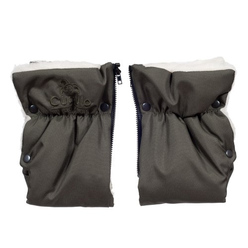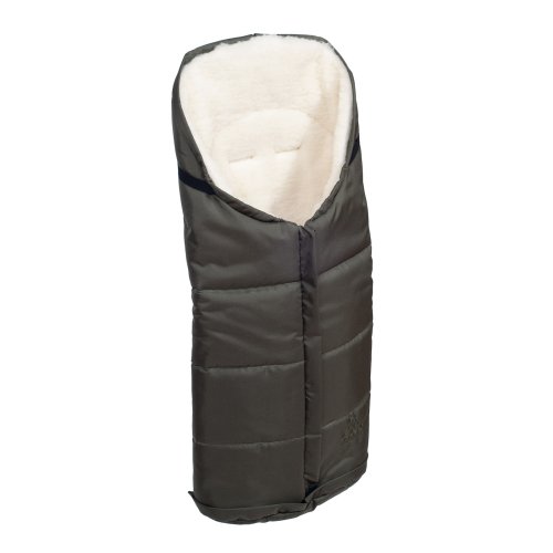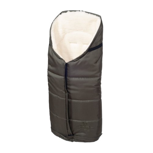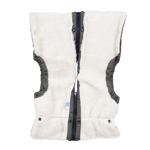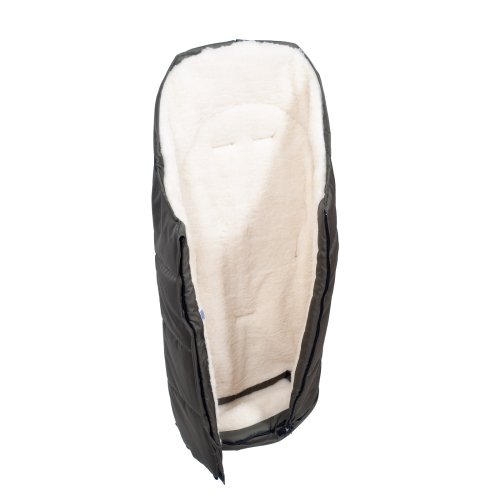 Nepromokavý fusak s rozepínáním vpředu a rukávník na kočárek z ovčí vlny do nízkých teplot ve stejné barvě.