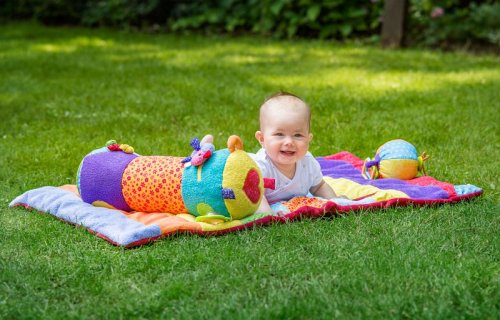 Dětský set od značky Niny obsahuje deku, válec a míček. Jsou vyrobeny z jemného měkkého plyše a obsahují různé hrací komponenty – chrastítka, kousátka, pískátka, zrcátka vyrobená z bezpečnostní fólie ve kterých může dítě pozorovat svůj obličej a části vydávající zvuky mačkaného papíru. Všechny tyto komponenty stimulují dětské smysly i jemnou motoriku. Design německé návrhářky Britty Hurter.