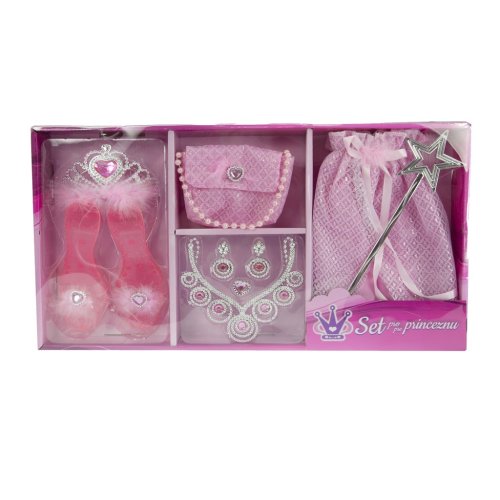 Každá holčička sní o tom stát se princeznou! S tímto kouzelným princeznovským setem můžeš okamžitě vstoupit do pohádkového světa. Sada obsahuje vše, co k tomu potřebuješ – nádhernou sukýnku, roztomilé pantoflíčky, třpytivou korunku, stylovou kabelku, magickou hůlku a krásné šperky. Užij si hodiny zábavy při hraní na princeznu a ukaž všem, jaká jsi skutečná královská dáma!
