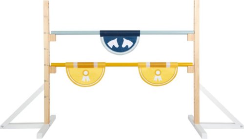 Tato překážka z masivního dřeva přináší spoustu zábavy při skákání pro malé milovníky koní, ať už skáčou sami nebo si hrají se svými koníčky! Překážka, která je postavena stejně jako skutečná, má variabilní výšku mezi 20 a 70 cm. Chcete-li výšku nastavit, jednoduše zasuňte dvě tyče překážky do požadovaných otvorů. Tři malé praporky poskytují autentickou dekoraci příčky. Hra na "koně" a skákání přes překážky s hobby koněm jsou oblíbenou zábavou všech věkových kategorií! A stejně jako u skutečných překážek, tyč při dopadu během skoku spadne! Dva držáky na tyč jsou z obou stran potištěny výškovými mírami a díky základnám z masivního dřeva stojí stabilně. Kombinací s překážkou Kavaleta (LE12397) vytvoříte komplexní cvičební okruh. Kdo dokáže přeskočit tyč, aniž by mu spadla? Hlavní vlastnosti: moderní pastelové provedení s prvky přírodního dřevavhodné pro hru na "koně" (hobby horsing) či psí agilityvýška skoku 20 – 70 cm2 překážkové tyče a 3 dekorativní vlaječkystabilní základna a číselné hodnoty výšky skoku