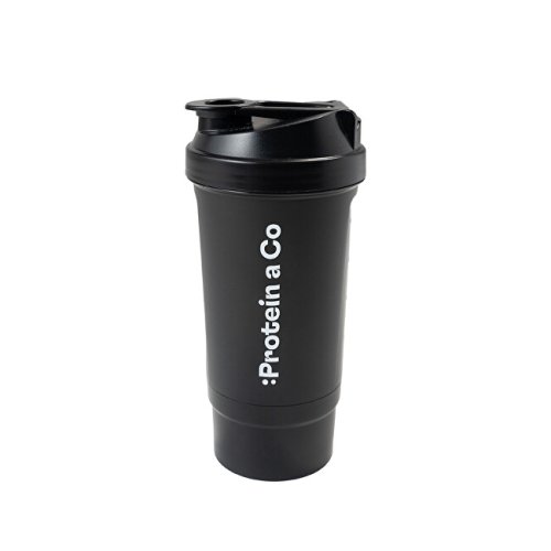 Shaker o objemu 500 ml se zásobníkem a mřížkou pro rozmíchání instantních nápojů.
