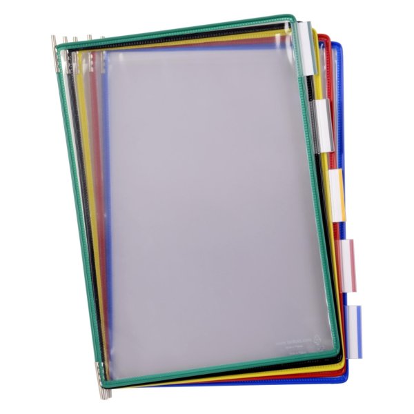Barevné kapsy formátu A4 pro přehledné umístění vašich dokumentů Balíček navíc obsahuje 5 plastových popisek, kterými můžete kapsy dále odlišit Balení 10 ks