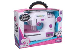 Šicí stroj. Velikost 24cm. Baterie 4xAA nejsou součástí. Obsahuje kousky látky, navlékač jehel, metr. USB kabel součástí.