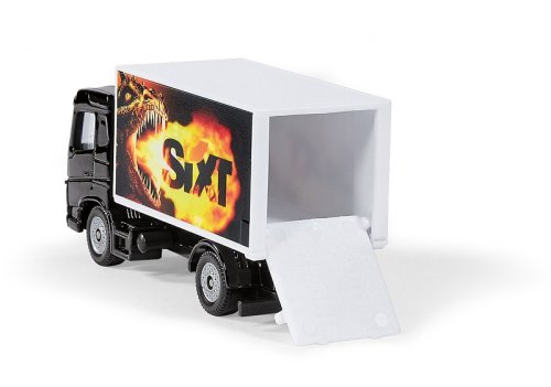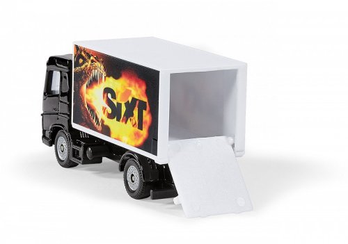 Chystá se stěhování? Nebo je možná auto příliš malé na přepravu obzvláště objemných předmětů? Žádný problém – do půjčovny Sixt se skříňovou nástavbou se vše vejde! Kovová kabina řidiče je lakována černě a je posazena na dvounápravovém plastovém podvozku s volně pojezdovými koly. Pro nakládání a vykládání kamionu lze otevřít zadní klapku skříňové nástavby. Obrovská dračí hlava po stranách je skutečným poutačem; jeho oranžovo-žlutý oheň obklopuje nápis „Sixt“. Rozměry balení: 9,7 x 7,8 x 3,2 cm. Věk: 3+