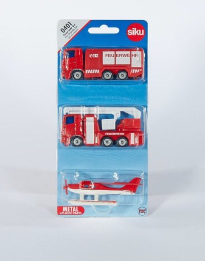 Hasičský set Siku - cisterna, hasičské auto se žebříkem a hydroplán. Rozměry: 9,5x20x4cm. Věk: 3+