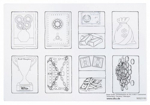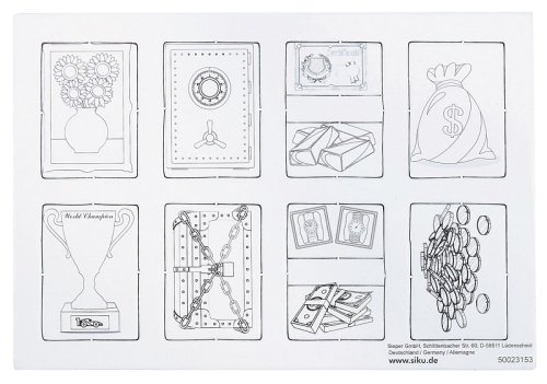 Pancéřovaný ocelový prostor pro posádku, výkonný podvozek 4x4 LKW a nejnovější ochranná technologie – přepravník peněz Rheinmetall Survivor je speciální vozidlo ve své třídě. Vždyť je určen pro důležitá speciální nasazení a pro přepravu zvláště cenných nebo citlivých nákladů. Ať už jde o bankovky, šperky, důležitá umělecká díla nebo kontroverzní dokumenty – v pancéřované ocelové přihrádce pro posádku je exkluzivní náklad 100 procent chráněn. Přepravník peněz od siku je v nenápadné metalické modré barvě a na bocích je aplikováno logo „Global Security“. Dveře na obou stranách a vzadu lze otevřít. Pomocí přiložených archů samolepek lze vozidlo ještě dále nakonfigurovat, například „Přeprava peněz a cenností“ a „Monitorováno GPS“ v různých jazycích. Pro obzvláště realistickou zábavu při hraní obsahuje sada také čtyři malé zlaté cihličky a čtyři kartonové listy s dalšími herními komponenty. Ty zobrazují různé náklady, jako jsou pytle s penězi, pokladničky, obrazy a certifikáty. Předtištěné komponenty lze jednoduše vylisovat z kartonových archů a uložit do transportéru. Zvláštní zvýraznění: Dva z kartonových listů jsou předtištěné a další dva obsahují pouze obrysy, takže jednotlivé komponenty může uživatel vybarvit a kreativně navrhnout. Rozměry balení: 17,5 x 9,7 x 7,1 cm. Věk: 3+
