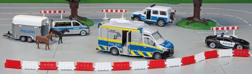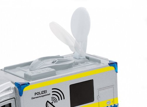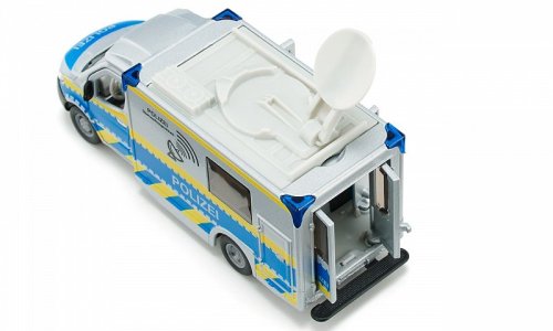 Čím složitější je policejní operace, tím důležitější je spolehlivá komunikace mezi pracovními skupinami. Interakce prostřednictvím satelitu funguje rychle a hladce, dokonce i v krizových nebo katastrofických situacích. Policejní sprinter siku od Mercedes Benz je vybaven odpovídajícím vybavením. Otočnou satelitní anténu na její střeše lze během cestování sklopit. Dveře na obou stranách kabiny řidiče lze otevřít, stejně jako dvoje dveře na pravé straně a vzadu. Rohy skříňové nástavby jsou označeny čtyřmi modrými světly. Typické stříbrno-modré zbarvení Police Sprinter je doplněno celoobvodovým žlutým signálním značením a také nápisy „Polizei“. Rozměry balení: 17,5 x 8,7 x 5,9 cm. Věk: 3+