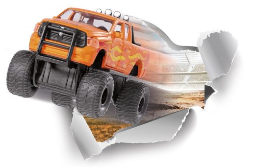 Tato oblíbená americká zakázková varianta Dodge RAM má nejen plameny na karoserii, ale pálí i vepředu: 395 HP pod kapotou! Přední stranu zdobí svalnatá hlava berana, symbolizující sílu a vytrvalost. Obzvláště robustní vzhled umocňuje dobře známý ochranný rám, masivní přední chránič. Rám umístěný na nákladovém prostoru nese osvětlovací jednotku se čtyřmi reflektory. Karoserie tohoto modelu siku je vyrobena z kovu a lze otevřít kapotu, dveře a zadní víko. Každá z jeho náprav je samostatně odpružená a kola lze měnit. Jako zakázková varianta s vysokým podvozkem v jasně oranžové barvě s obzvláště tlustými a širokými balónovými pneumatikami a plameny potištěnými na obou stranách vytváří RAM 1500 působivý vzhled, který je často vidět na amerických dálnicích. Rozměry balení: 17,5 x 8,7 x 6,5 cm. Věk: 3+