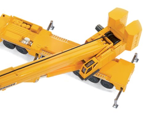 Kovový model těžkého autojeřábu LIEBHERR je vyroben z kovového výlisku s plastovými součástmi. Rameno s kabinkou jeřábníka je otočné kolem dokola, první pole ramene je kovové a druhé, výsuvné pole, z plastu. Model je vybaven dvojitým hákem, který je na šňůrce a pomocí kolečka lze délku nastavovat podle libosti. Podpěry po stranách autojeřábu je možné vysunout do pracovní polohy. Měřítko: 1:87. Rozměr: 209 x 79 x 347 mm. Rozměr balení: 25,5 x 6,6 x 9,7 cm. Věk: 3+