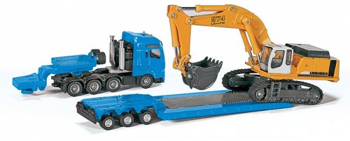 MAN TG-A jako působivý model čtyřosého těžkého tahače v měřítku 1:87. model je vyroben převážně z kovu s jemnými detaily a opatřen plastovými doplňky a gumovými koly. Podvalník lze snadno odpojit. Bagr LIEBHERR 974 je propracován do detailů a spolu s funkčním ramenem tvoří jedinečný model. Dále potěší kvalitní potisk a reálné zbarvení. Rozměr: 275 x 55 x 81 mm. Rozměr balení: 32 x 5,9 x 10,5 cm. Věk: 3+