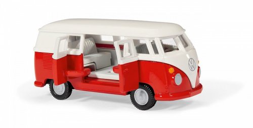 T1 od Volkswagenu je víc než jen vozidlo – je to legenda! Příběh úspěchu německého minibusu začal v 50. letech 20. století a jeho němečtí fanoušci mu s láskou říkají „Bulli“. Byl symbolem německého hospodářského zázraku a v USA byl kultovním znakem hippies. Díky svému zaoblenému designu, lesklému laku a chromovaným nárazníkům svým vintage charakterem dodnes okouzluje značnou základnu fanoušků. Jako model siku je kultovní minibus VW T1 samozřejmě k dispozici v nezaměnitelné bílo/červené barevné kombinaci s věrnými originálními koly. Karoserie a dveře jsou kovové, nástavba plastová. Dvoje dveře lze otevřít na prav é straně vozidla. Jeho závěs pro přívěs umožňuje T1 kombinovat s mnoha přívěsy. Rozměry balení: 17,5 x 7,5 x 6,5 cm. Věk: 3+