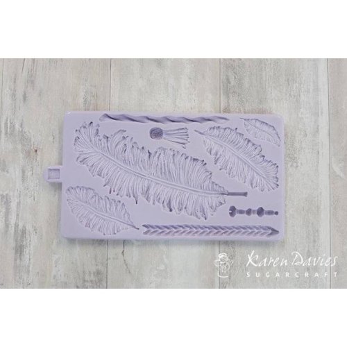 Silikonová forma peří od Karen Davies. Rozměry 21 x 12 cm.