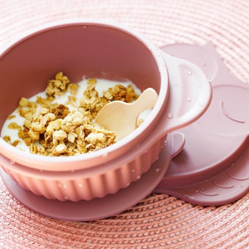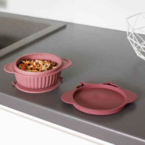 Silikonová miska s víčkem GIOfresh Owl Pink