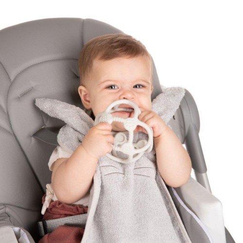 Silikonové kousátko pomáhající tišit bolest v období růstu prvních zoubků.