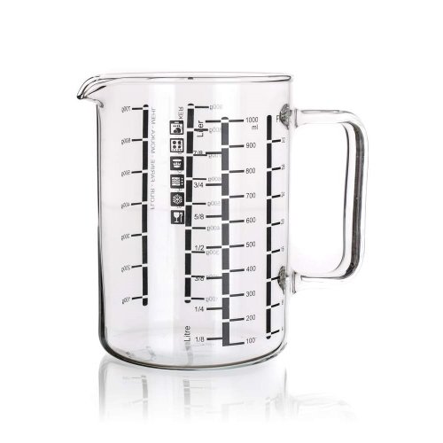 Kuchyňská odměrka 1 l se vyrábí z tvrdého boritokřemičitého skla, které je velmi odolné (mechanicky i teplotně). Teplotní odolnost je +300 / -40 stupňů C. Výhodou je dlouhá životnost, hygienická nezávadnost výrobků (jsou hladké a neporézní), snadno se udržují (lze je mýt v myčkách na nádobí) a jsou také ekologické.