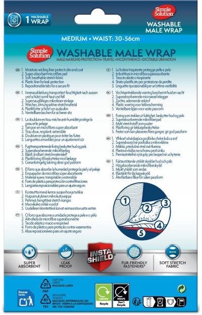 Zvládání zvířete s močovou inkontinencí může být obtížné. Tyty plenky pro psí pány ochrání Váš domov před močí a obnoví klid Váš i Vašeho psa. Jsou vyrobeny z lehké tkaniny. Vlhkost odvádějící provedení pro ochranu pokožky a srsti, super absorpční vložka z mikrovlákna zachycující vlhkost, plastová vrstva proti protečení a pružný, nastavitelný pás, který zajišťuje bezpečné uchycení i pro ty nejaktivnější psy.