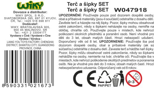 Šipky set 6 šipek. Průměr terče 37 cm. Obsah balení - terč, 3x červená šipka, 3x modrá šipka.