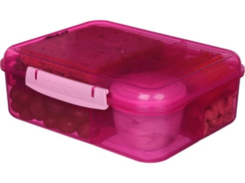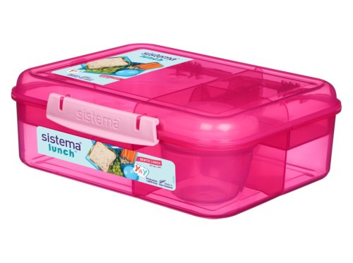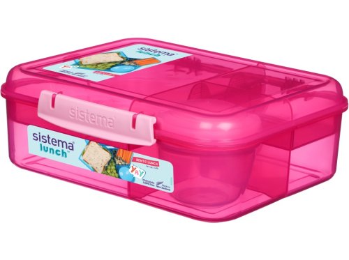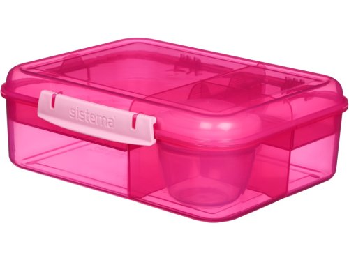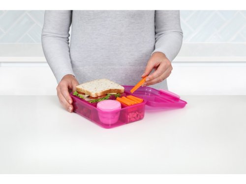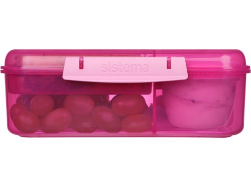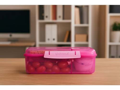 Díky inovativnímu designu s třemi komorami, odnímatelnými tácky a 150ml kelímkem na jogurt, tato krabička umožňuje udržet jídlo oddělené a čerstvé až do doby konzumace. Vhodné pro mytí v myčce nádobí v horním koši.
