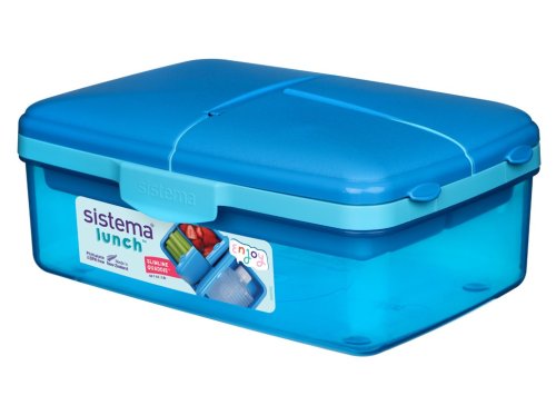 Díky inovativnímu designu s 3 výklopnými přihrádkami ve víku a 275ml lahví na pití, tato sada umožňuje udržet jídlo oddělené a čerstvé až do doby konzumace. Vhodné pro mytí v myčce nádobí v horním koši.