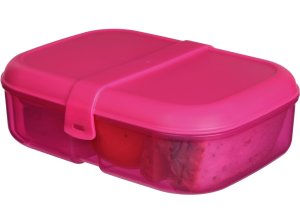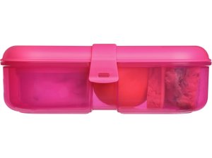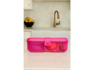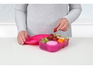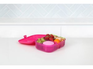 Díky inovativnímu designu s třemi komorami a pohyblivou dělenou přihrádkou, tato krabička umožňuje udržet jídlo oddělené a čerstvé až do doby konzumace. Součástí je také 130ml Mini Bite™ s těsnícím šroubovacím víčkem, ideální pro jogurt, dresinky nebo omáčky.